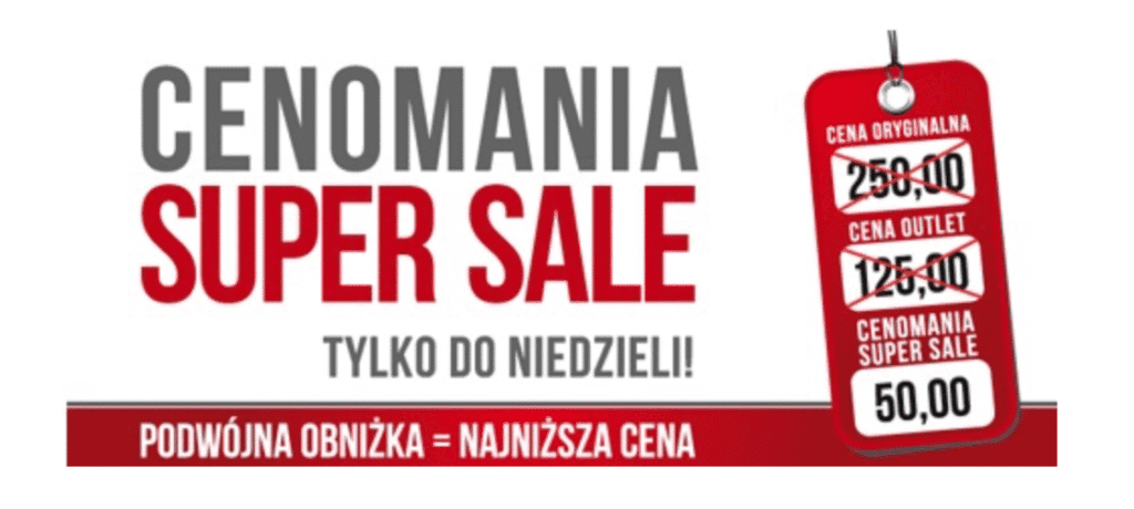 I jeszcze taka ciekawostka… na powyższej grafice, jeśli się dobrze przyjrzysz, zobaczysz dwie „kotwice”. Można powiedzieć, że jest to odwrócona strategia Wabika. Przyjrzyj się cenom: 250 zł, 125 zł, 50 zł. Zobacz, że różnica między 250 a 125 jest mniejsza, niż między 125 a 50. To znaczy, pierwsza obniżka miała wartość 50%, ale druga – to już 60%. Więc wydaje się tym bardziej, że cena 5o zł to niebywała okazja.